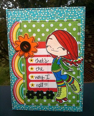 Todays stamp is the rockin Dancin' Mae. She is comes with a matching sentiment.She is perfect for cards or layouts and projects about your favorite music, your ipod or how your girl loves to dance!